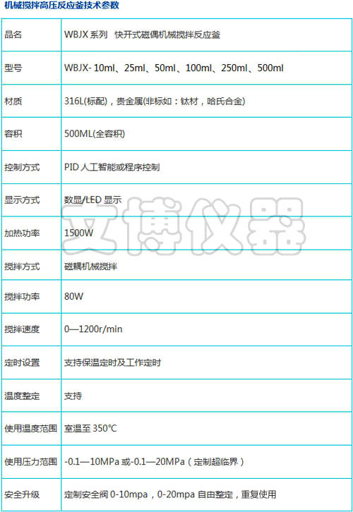 機械攪拌高壓反應釜采用機械攪拌和磁力雙攪拌,WBJX-500ML系列使用了進口的磁力攪拌和程控機械攪拌器,并且可以遙控操作,實現了高壓反應釜的智能化。